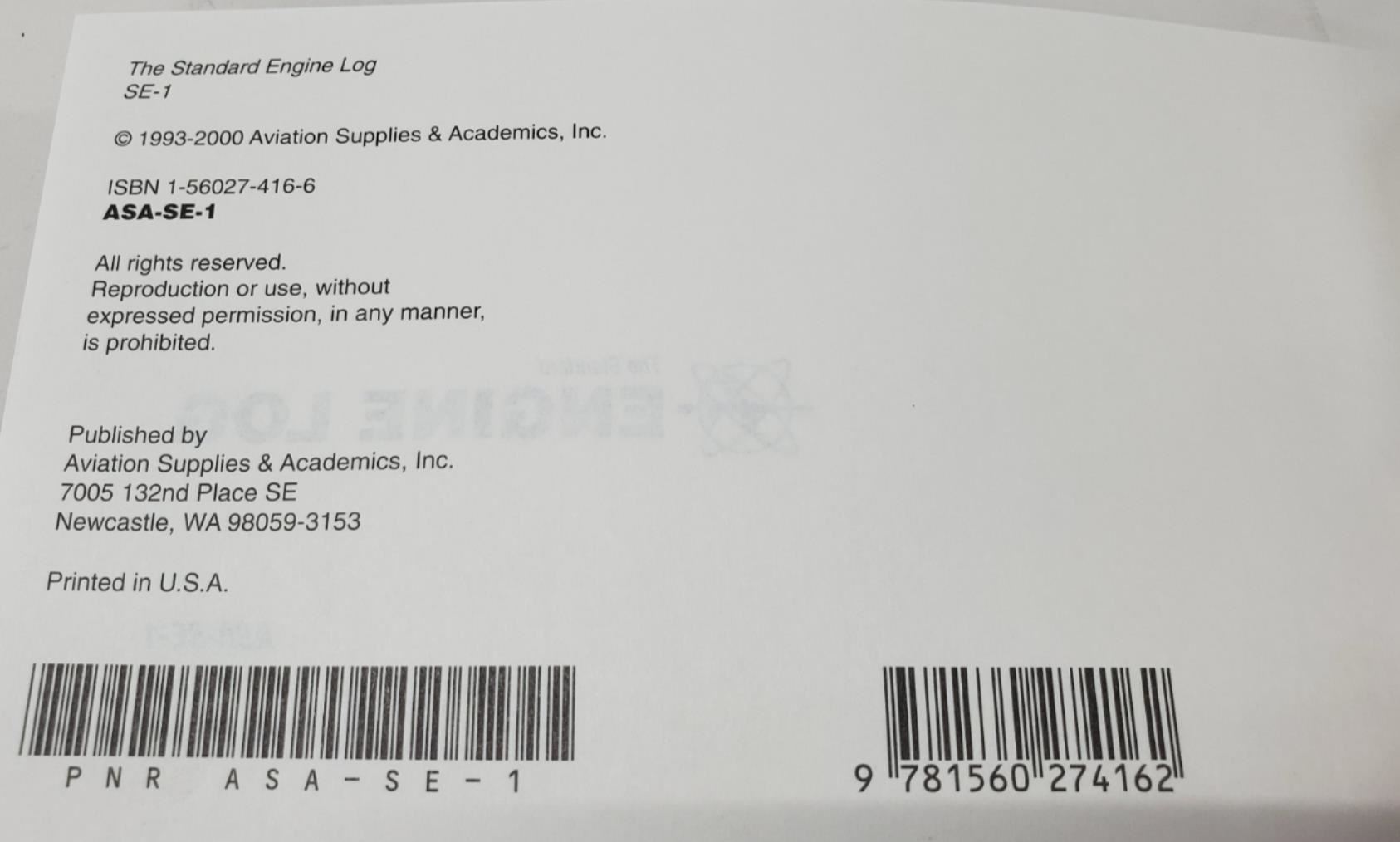 1 Lot of 4 New Old Stock ASA-SE-1 Enging Log Books Softcover