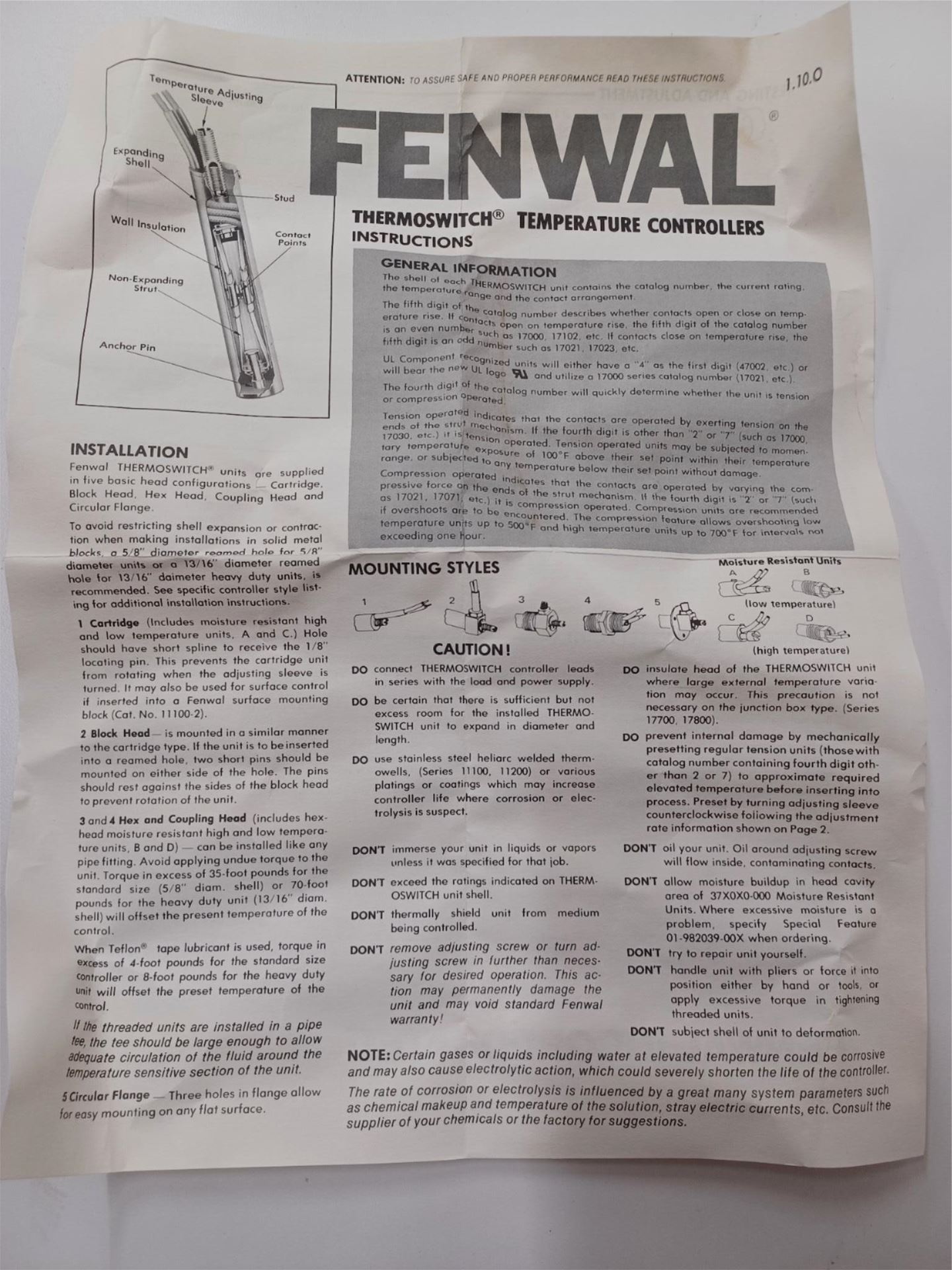 Fenwal Thermoswitch Control, p/n 17321-0