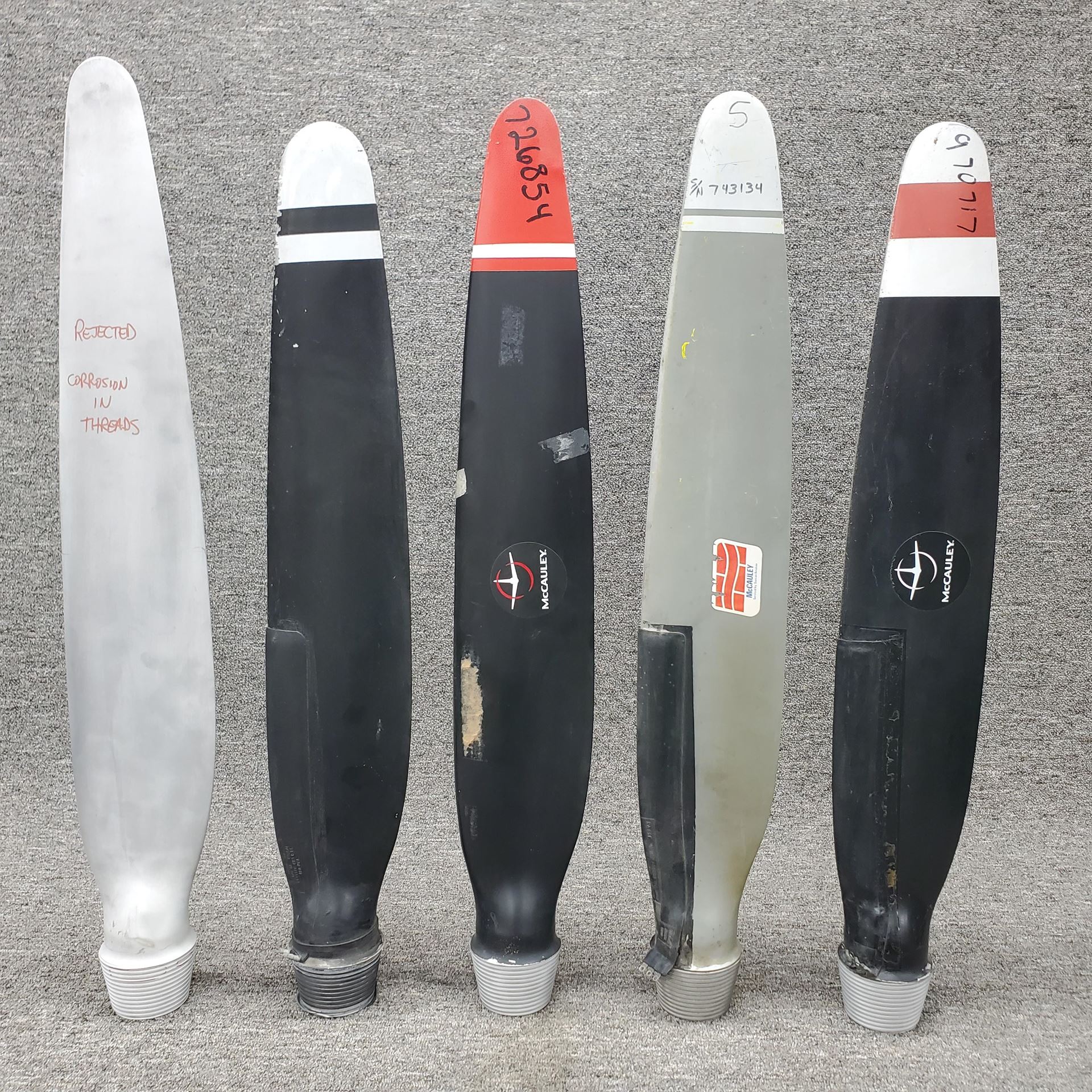 These blades have some sort of defect either pitting on the threads and or nicks, dings, scratches or do not meet minimum requirements to be airworthy.
