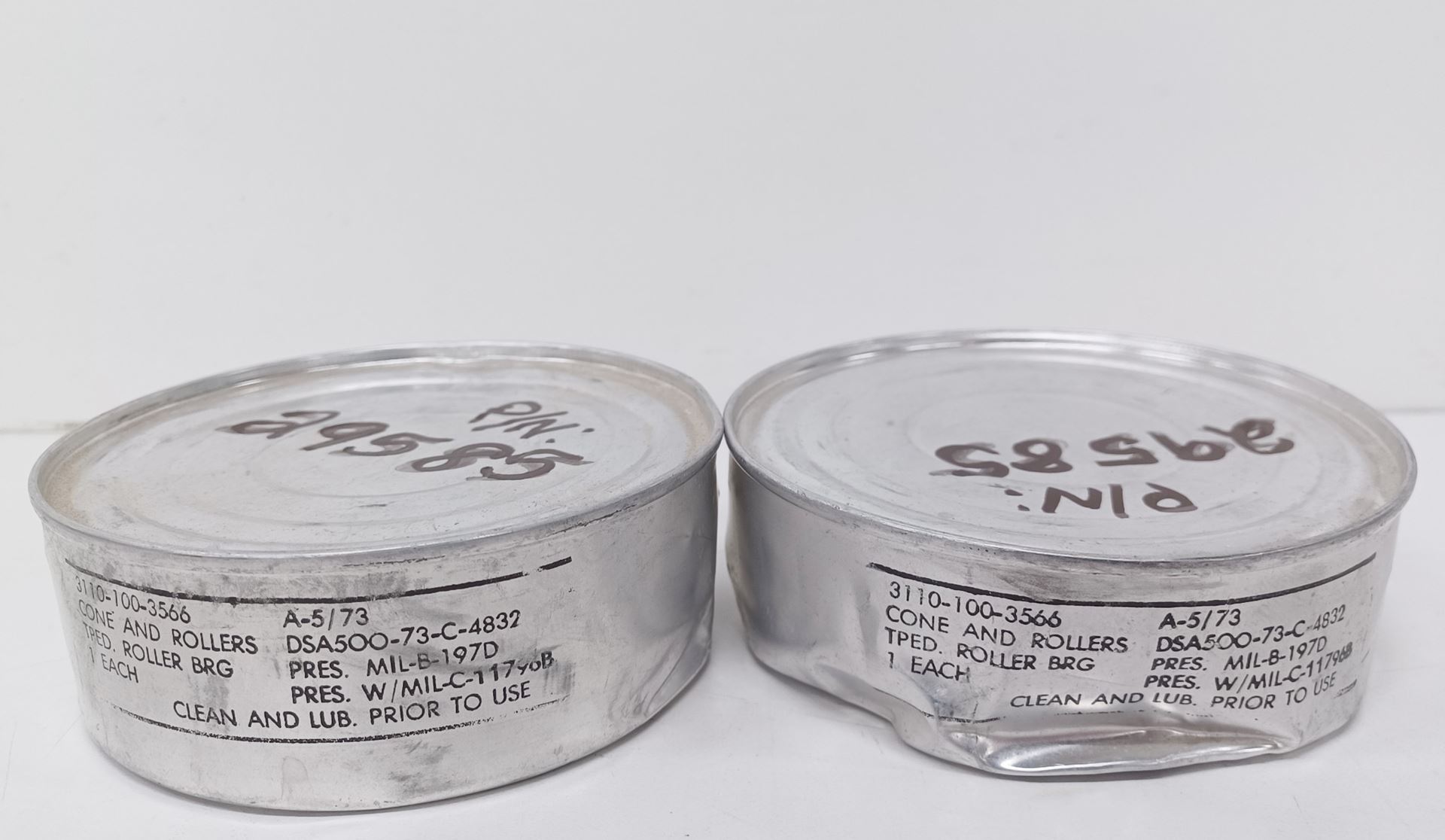 Please note that the bearing containers/cans have various dents present.