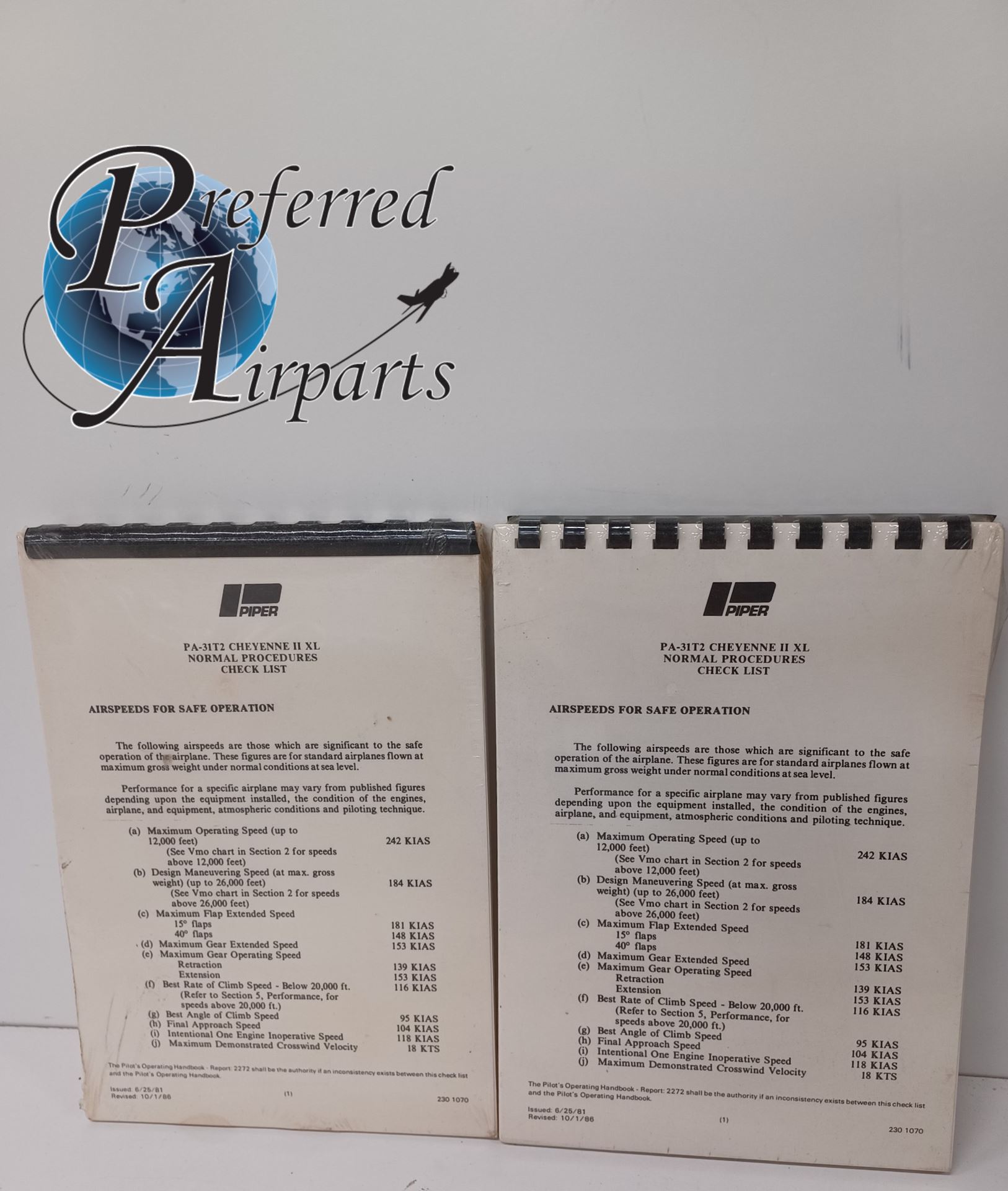 Lot of 2 PA-31T2 Cheyenne II XL Normal Procedures Check List