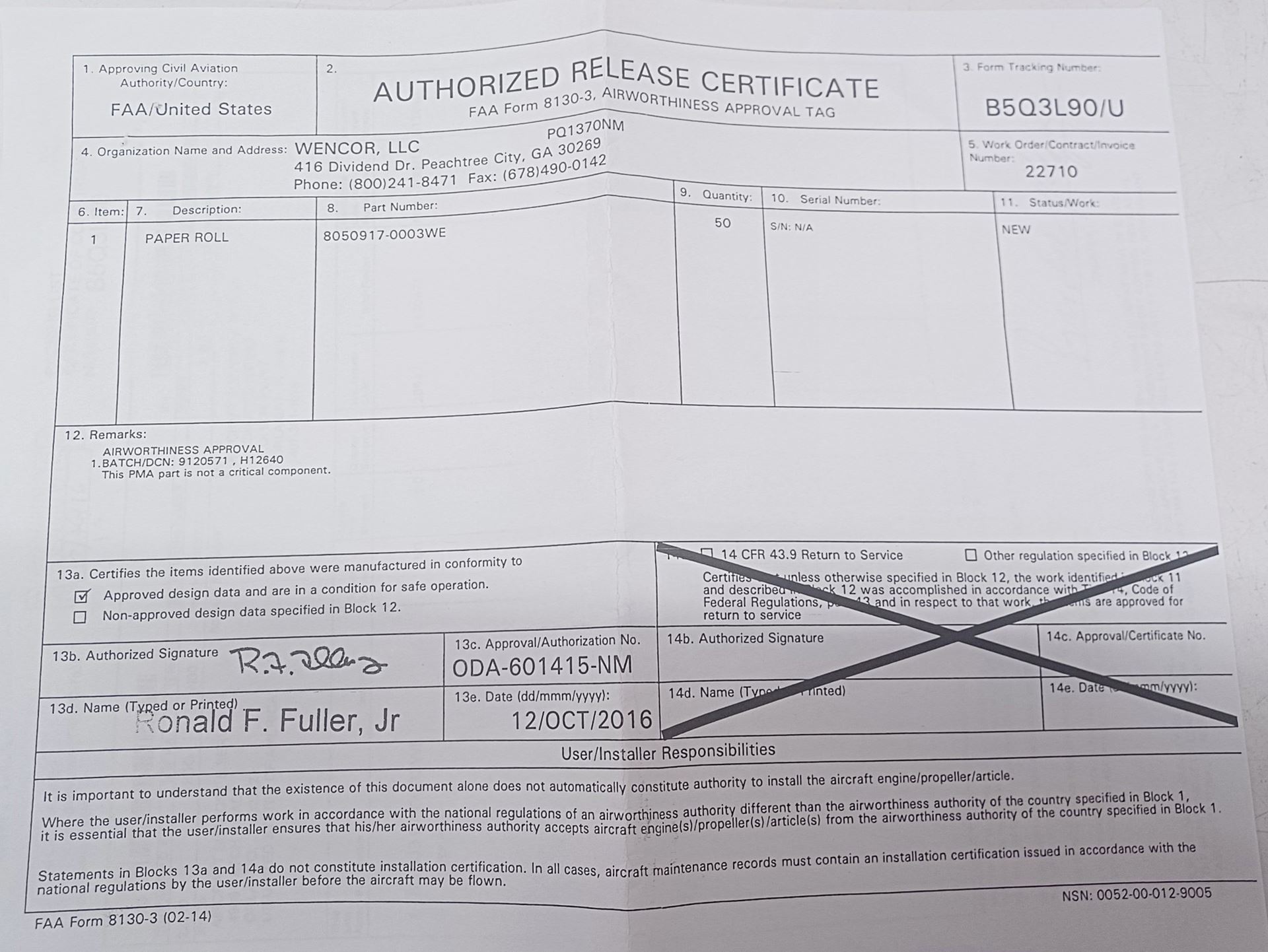 Part Number: 8050917-0003