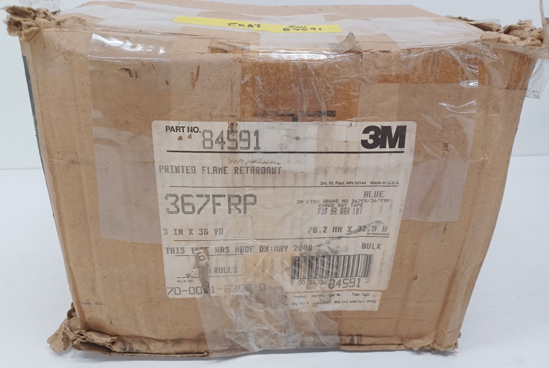 New Surplus 3M Printed Flame Retardant Tape, 3" x 36 Yard Roll p/n 84591, 367FRP BH