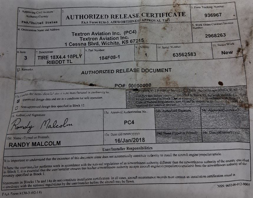 Includes FAA Form 8130-3, dated Jan 16 2018