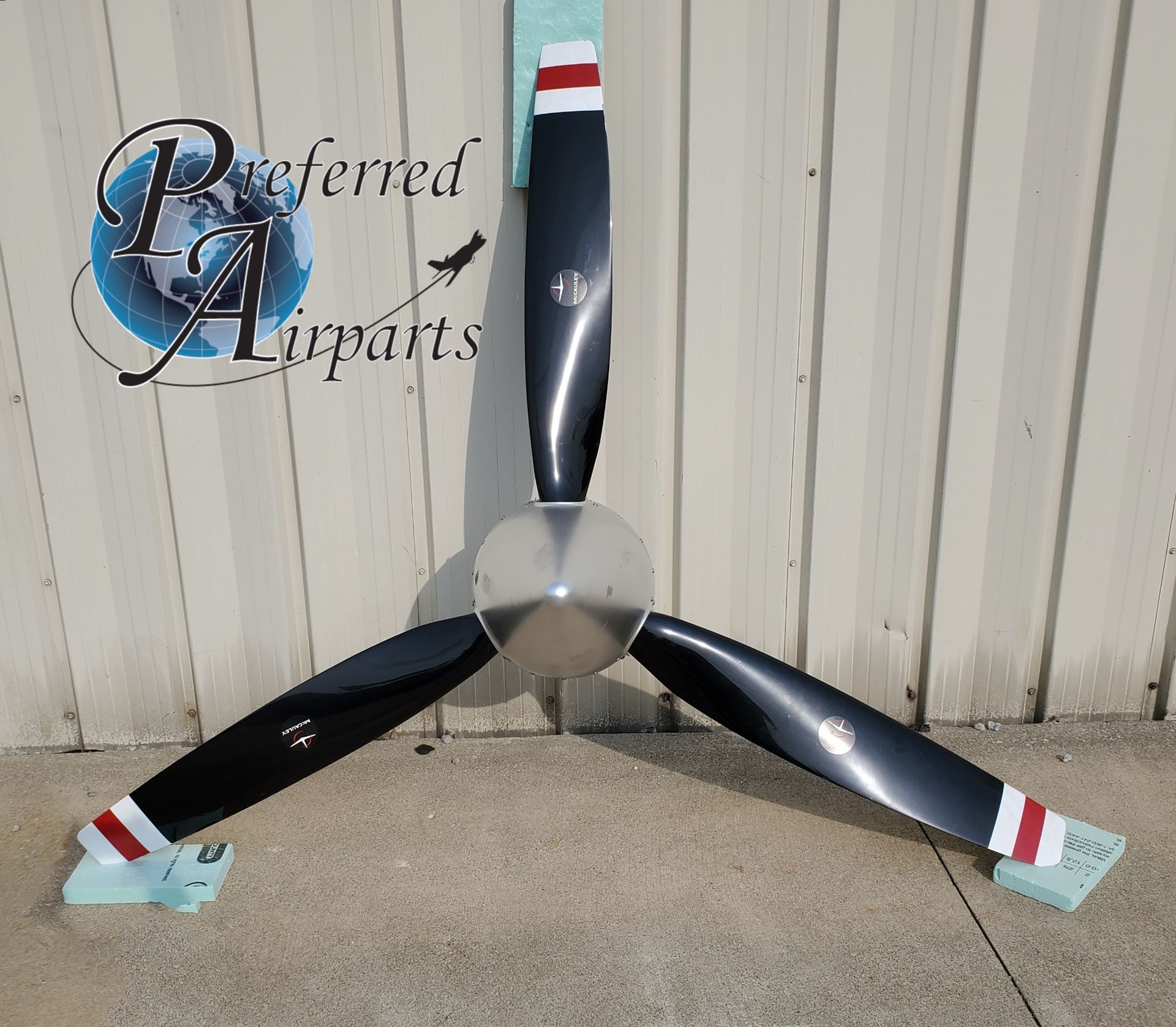This is a Painted 3-blade propeller for display only. It was modified to hang on a wall and is not usable on an Aircraft.