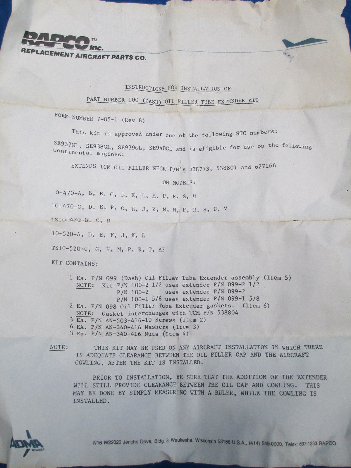 Homebuilt, Antique Aircraft Parts