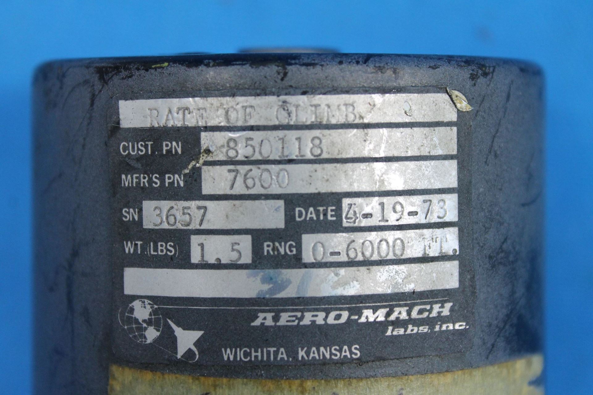 Used Aero-Mach Aircraft Rate of Climb Indicator Core p/n 850118, 7600 (23636)