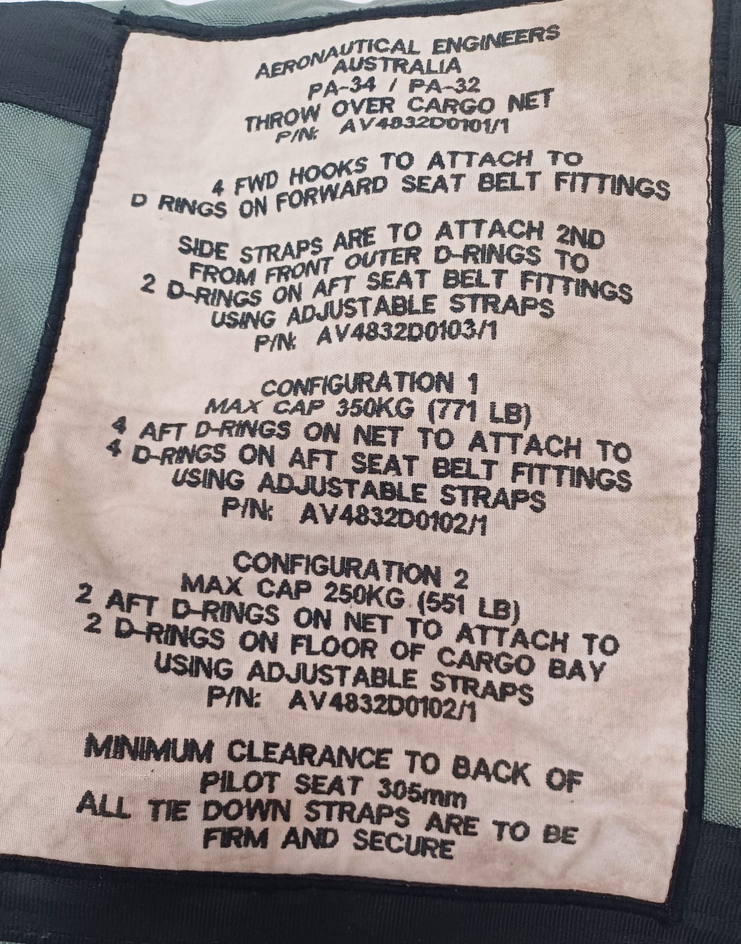 Aeronautical Engineers Australia/John's Aircraft Upholstery Service Throw Over Cargo Net