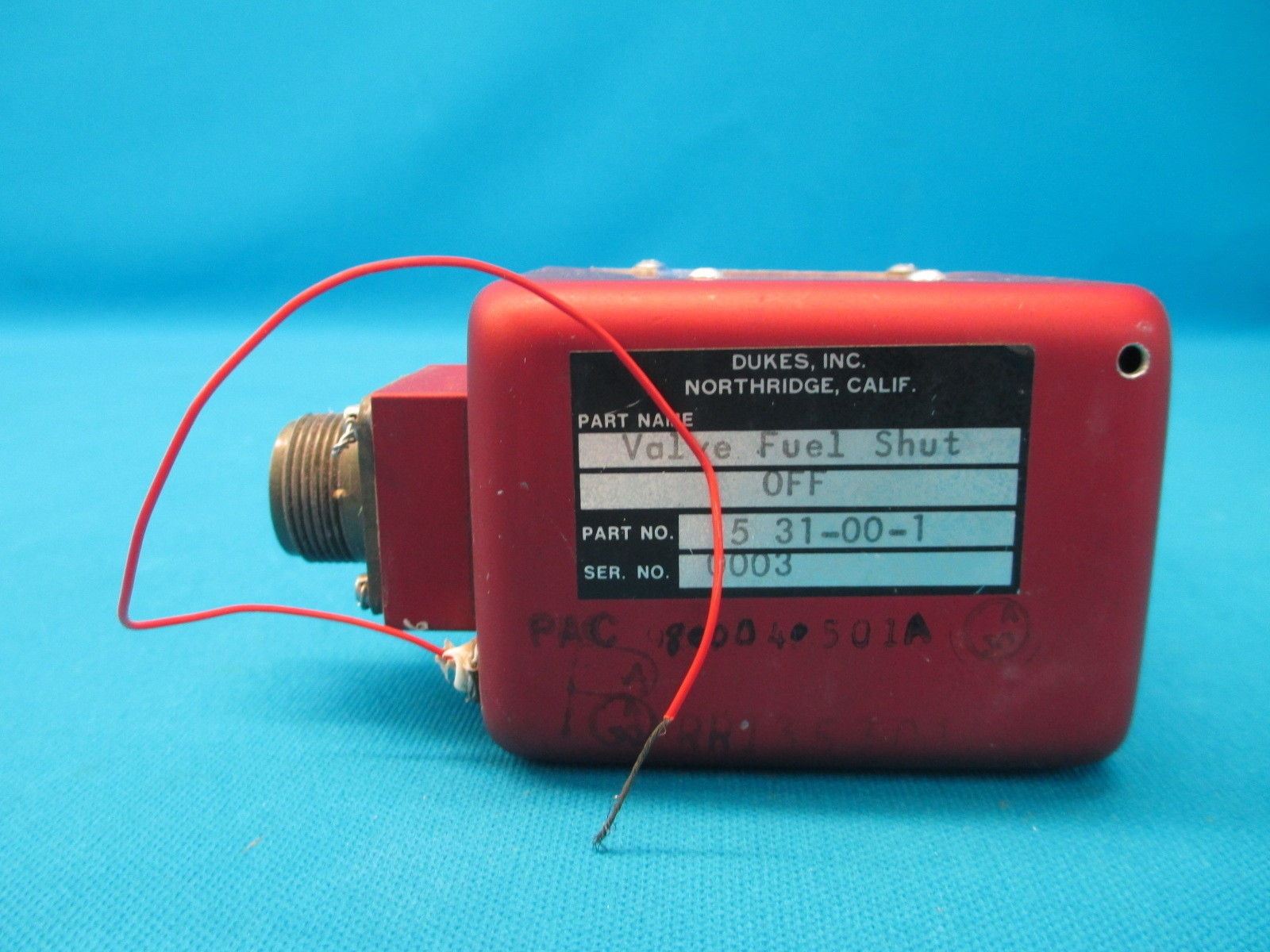 Used Dukes Piper Aerostar Aircraft Electrical Shutoff Valve pn 1531-00-1 (12632) BH