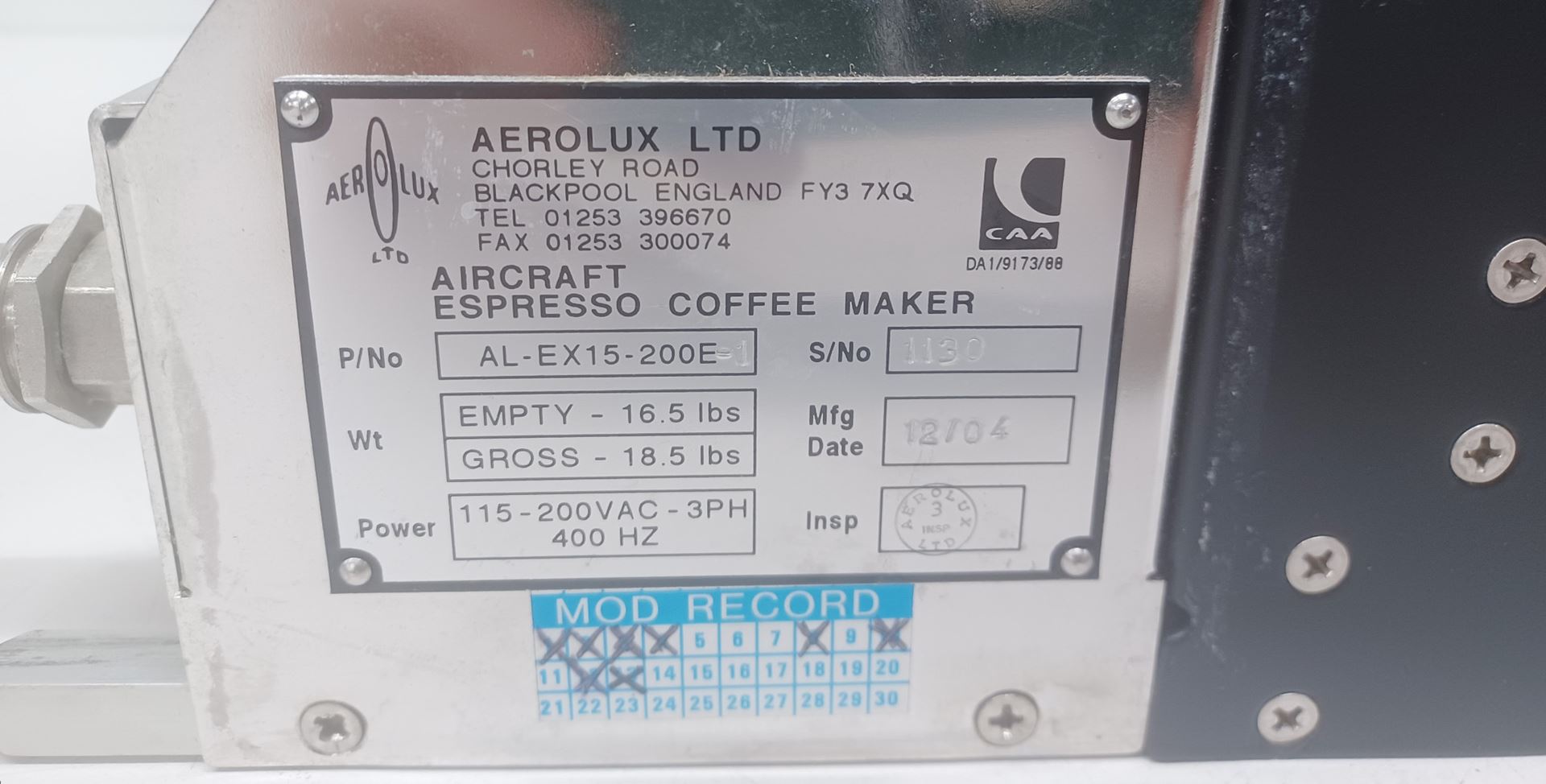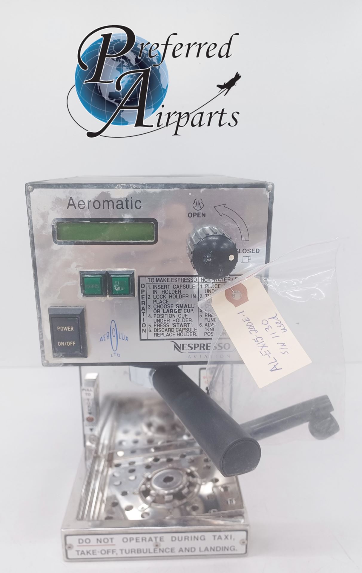 Used Nespresso Aerolux Aeromatic Arcrft Espresso Coffee Maker p/n AL-EX15-200E-1 BH