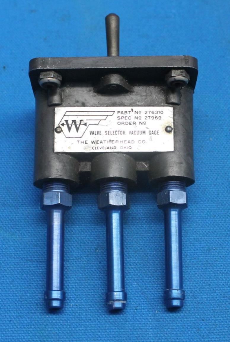 Used Weatherhead Co. Aircraft Vacuum Gauge Valve Selector, p/n 276310 (24350) BH