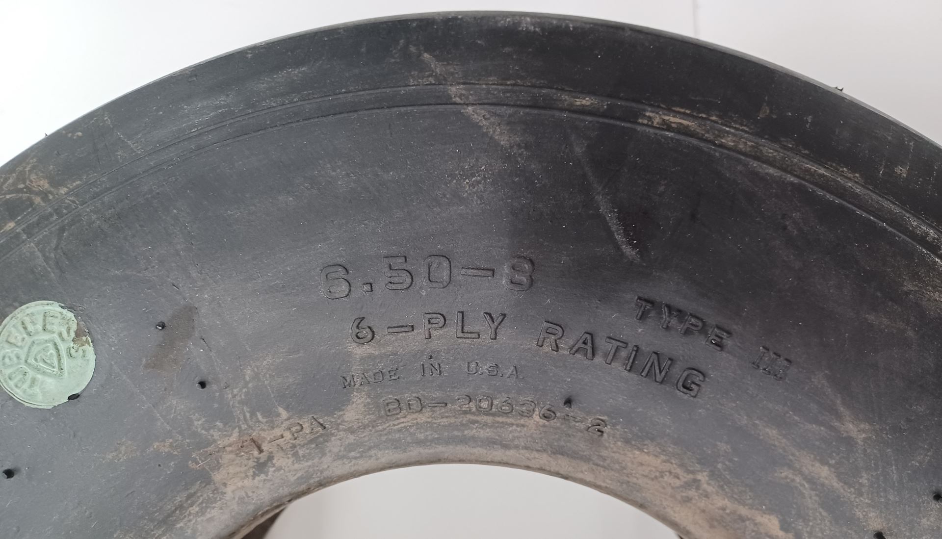 Vintage Firestone Sky Champion Aircraft Tire 6.50x8 6 ply, Tubeless, BD-20636-2 BH